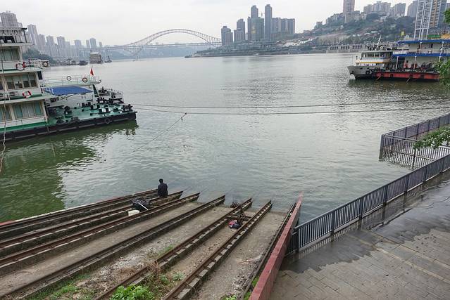 出发之前刚好看到严明在《我爱着哭不出来的浪漫》里的第一篇就写的是重庆,写的朝天门码头。使得我也想踏一踏码头贵妇踩过的阶梯,感受一下“高下、贫富、聚散,都是码头从来无需按耐的心事”,听听游轮的汽笛声和小贩们的叫卖。