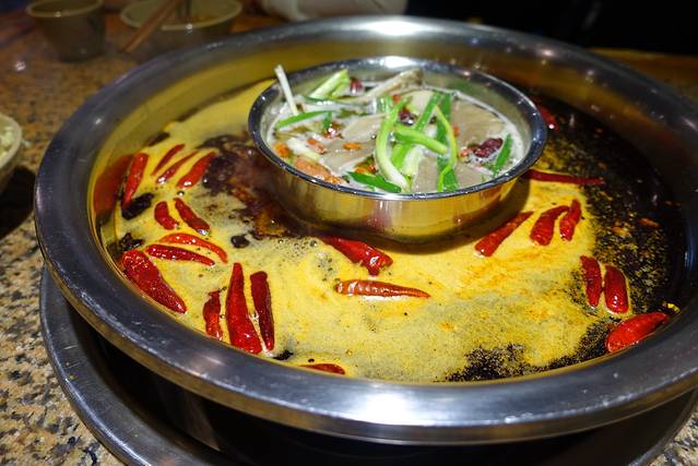 由于我们是在重庆北站坐车,就找了家城北的晓宇火锅。碰见一个态度超好的女司机,虽然不知道火锅店在哪,说只要开着导航就可以去,开车很稳赞一个。据说晓宇火锅上了舌尖之后名字就被注册了,所以就改名叫“渝味晓宇”。