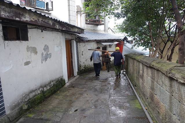 一路向上,沿靠近江边这条路走不远可以俯瞰长江。这里还住着挺多人,一直有挑着担担的人走来走去。还有刚刚放学的少年,可爱的小狗,热火朝天搓麻的人们。每家每户大门敞开,可以看见他们的客厅、厨房,水池就在沿街,与步道融为一体。