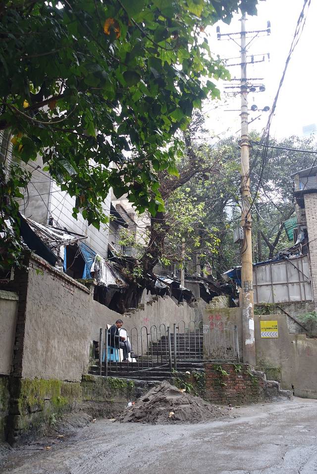 吃过了面,雨就几乎停了。趁着温润的雨气,看一看真山城,老重庆。这里是老重庆人生活的真实写照。十八梯其实就是个沿山阶梯,从下半城通往上半城。沿街能看到老百姓,只剩下一些理发店,修脚铺,茶馆什么,一副拆迁的模样。
