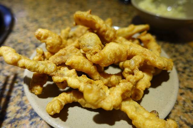 小酥肉。到了重庆才了解小酥肉的真正吃法,可以直接吃,也可以下锅里。当地人喜直接吃,一口咬开,里面的肉晶莹剔透,还留着油。特别要小心里面的花椒,每条肉里面都至少有两个,不慎咬到就要麻半天呢。