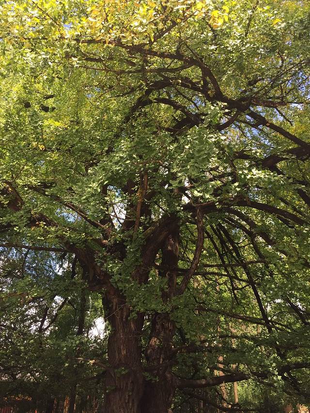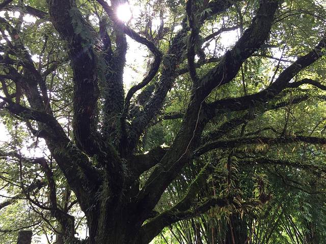 走在参天老树的绿荫下