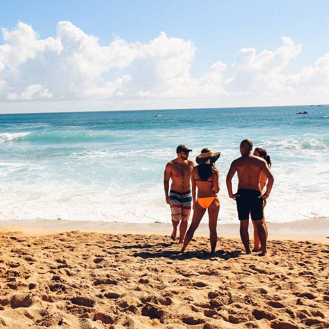 坐在海滩被浪冲上岸虽然很好玩,但是弄得浑身都是沙子,包括泳衣泳裤里面全是...妹纸要求回酒店换衣服....