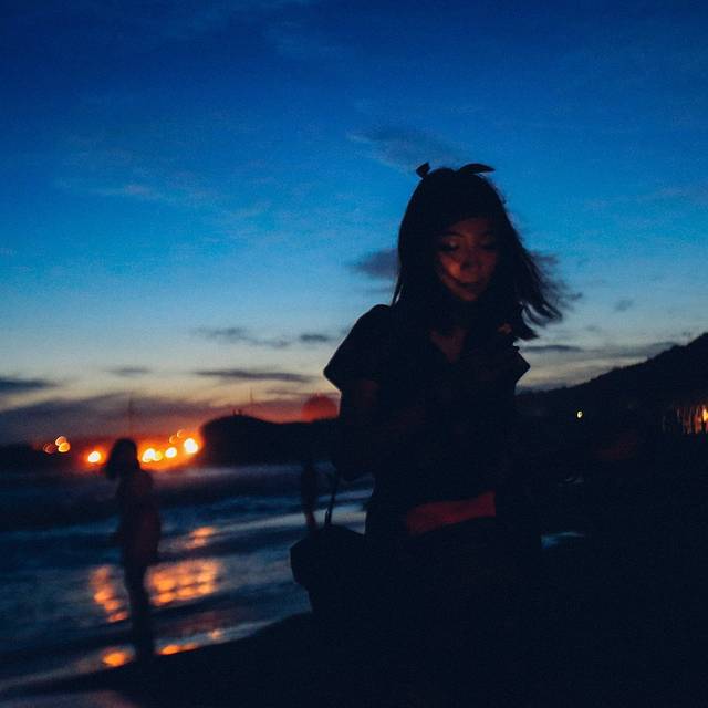 由于坐过70RMB一公里的计程车,我们只得勉强自己步行从酒店一路走到1公里外的南湾海滩。到的时候恰好日落,很快就伸手不见五指了...