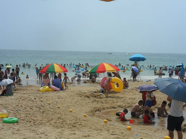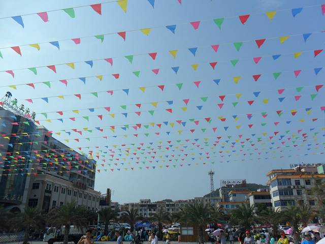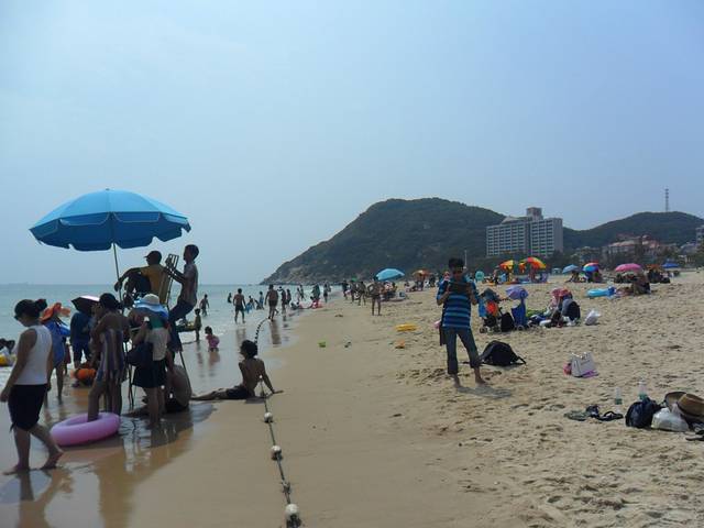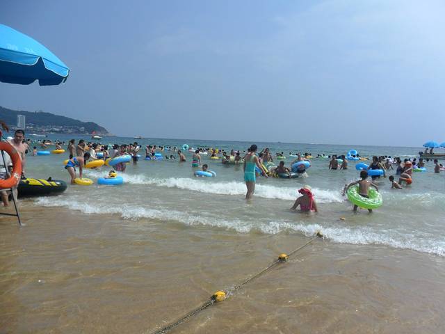蓝蓝的天,青青的山,海水清澈,游人如织