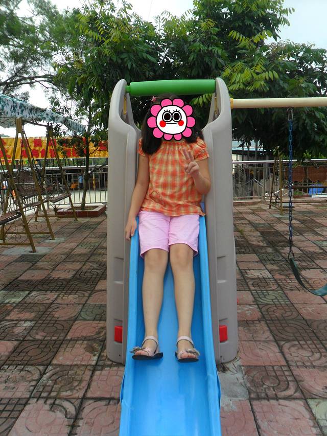 开饭前,在饭店滑梯上乐乐~