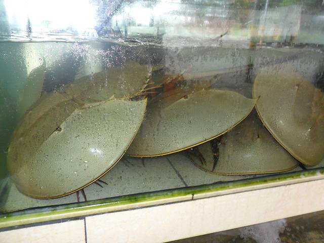 上午十点到岛上,在一个饭店,早餐午餐一起吃,吃饱,好去玩。这是什么?鲎~没点着吃