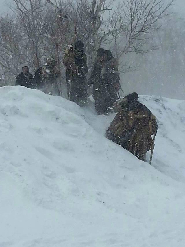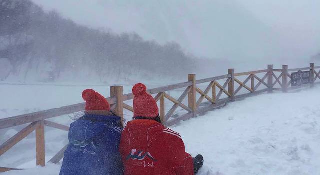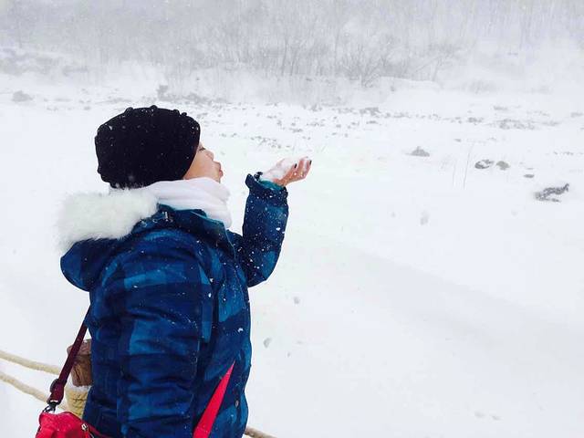下了环保车,马上就感受到了呼啸的山风和漫天的飞雪。拿出手机拍了几张照,温度太低手机自动关机了。。。