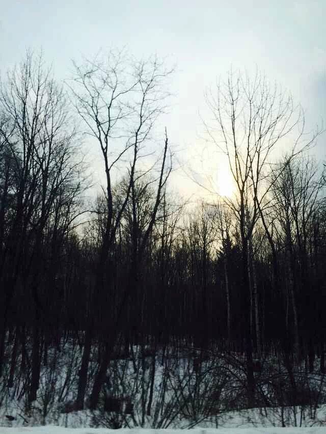 傍晚沿着来时的路回酒店,夕阳下的雪景也很美好。