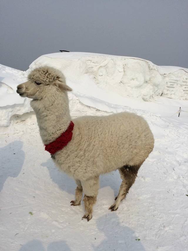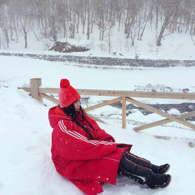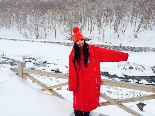 2个半小时后,我们到达了北坡景区。在山脚下租了大衣、雪地靴和护膝(租金都是50元),穿的像个球一样的进山了~