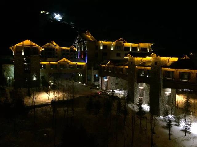 酒店后门出来就是滑雪场,万达真的牛逼,度假村里设备设施齐全的滑雪场、高尔夫球场、饮食、电影院、温泉洗浴应有尽有。