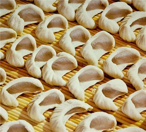 黄陵小吃耳朵套,具有浓郁的地方特色。耳朵套,顾名思义,就是做成的面食形状像耳朵。据说这种面食起源于秦汉时期,当时人们在寒冬时节怕冻伤耳朵,就创制这种面食,起名耳朵套。黄陵民间就流传“吃了耳朵套,不会冻耳朵”的说法。它的制作方法比较简单:将饧好的面揉搓成小拇指粗的细条状,然后用刀切成一寸长的小段,再用手的中指、食指和拇指握住小面条,用大拇指往斜上方搓。同时,食指和中指配合大拇指用力握,并将面条往上送,最后使面条回卷成耳朵状,下锅煮熟即可食用。耳朵套以其独特的造型弥补了粗粮口感上的不足,帮助人们度过了困难时期,在年长的人心里占据着很重要的地位。如今,当人们在享用耳朵套美味的同时总能体验到一种特别的幸福之感。