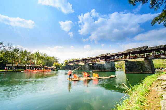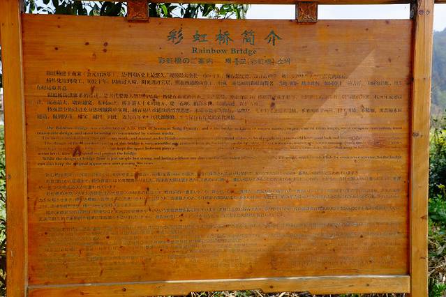 严田古樟游览完,我们开车去往彩虹桥,彩虹桥离晚上住宿的清华镇很近。原计划中午安排住宿吃饭,因为路上耽误了些时间不得不压缩了。于是到了清华镇下车后自行解决午餐便向彩虹桥出发。彩虹桥总体上来说也没有什么太值得留念的地方。如果在清华镇住宿,来不及去其他景点逛时,倒是可以考虑在静静的呆上一个下午。或者乘坐竹筏怡情泛舟于碧水蓝天之间。