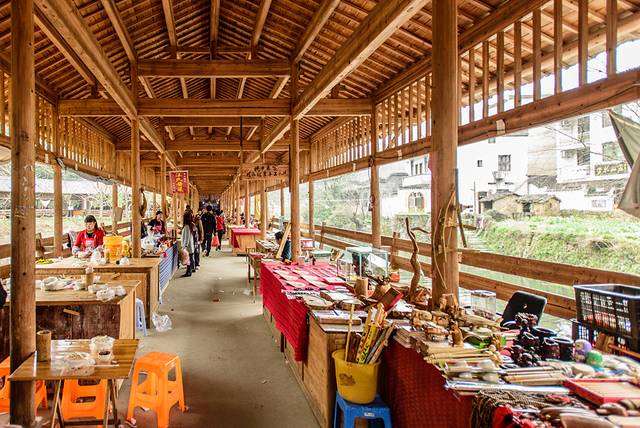 进入景区走没多久先要经过这么一条长廊,里面基本上是个集市的感觉。这是从河对岸拍的,也就是走出来之后回头拍摄的。