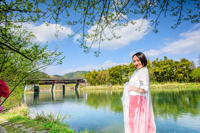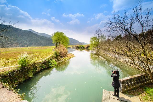 油炸坊再往前行进会看到一座小拱桥。桥下碧水荡漾,远山层峦叠嶂。桥后面便是传说中的千年古樟树。