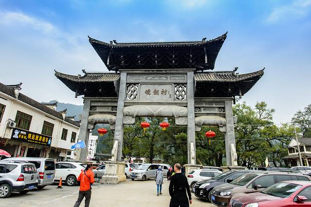 思溪延村的停车场有一个牌楼,是拍大合影的绝佳地点。能看得到帅帅的摄影师老范在哪里么?
