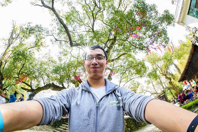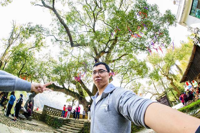 古树前来一张到此一游照。有了鱼眼镜头,到此一游也变得与众不同。主要看气质!