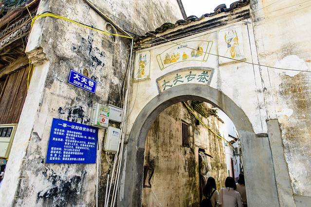 沿途有一个破旧的小房子。过了房子,沿途是一片与之前沿途看到的徽派建筑类似的小房子组成的小村子。房子比较高,房子之间是比较窄的小巷子,往来的人比较多,因此走在小巷子并没有什么太值得拍的地方,因为跟在其他地方看到的没什么差别,所以也就不上图了。