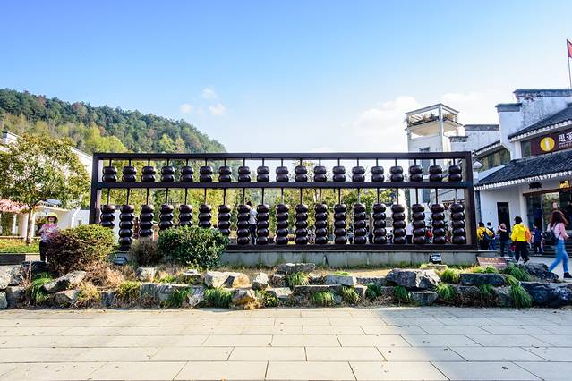 牌楼后面是一个金属质地的大算盘。开始并不解其意义。问度娘后得知思溪延村因为是“儒商第一村”。儒商经营的工具——大算盘自然成了村里的标志。好吧,跟我猜的精打细算的寓意差不多。看来我还真是机智……呵呵哒。