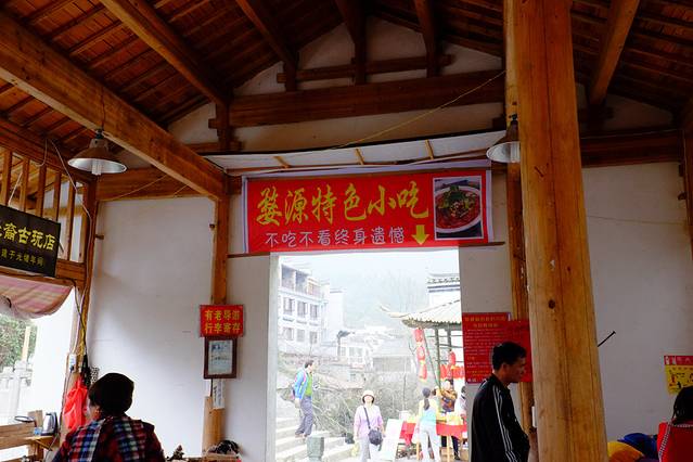行进至此,有小伙伴提出想去卫生间,正好大家走的也有点累了,景区的公共卫生间排着大长队,我们决定去找个农家院问问。本来还有点不好意思,一票人排队去人家上厕所,坐在人家店门口不住店也不点早餐,还跟人家蹭热水喝。以至于让我们自己心里都觉得过意不去了哈哈。店主是跟我们差不多的同龄人,人很实在也很热情,平时在外地打工家里只有老人在,到旺季的这一段才会回家来打理住店等事宜。婺源的旅游旺季就这么一个月。