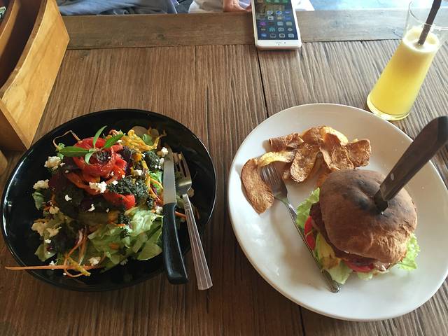△晚上到宁曼路不知道吃什么好误闯了一间只吃蔬菜的饭馆。我们纯粹是因为看见里面人多以为好吃才进去的。为什么那么多泰国人喜欢吃蔬菜。图上的以为是炒饭,原来是多种叫不出蔬菜的名组合成的沙拉。(ToT)