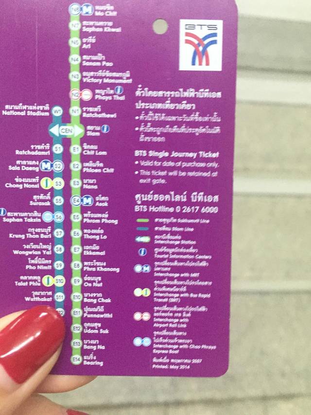 △BTS卡。一开始走错走去了地下的地铁,问了别人就告诉我们是在地上。原来这个BTS就是我们国内的轻轨。买票都是自己自助式的。买票机都安装在墙上,都是放硬币的。如果没零钱可以到服务窗告诉工作人员到哪个站,他们会帮你找零钱的。