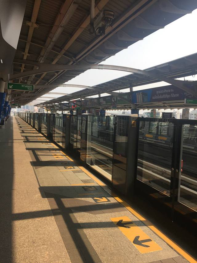 △飞了一个多小时吧,终于到了busy的曼谷。由于我临到泰国前搜索过酒店的所在方位,所以按照方位寻找又便宜又快的路线到住处。我的酒店是在中心外的所以我们就选择了先坐机场大巴(机场出口就看见了)到MOCHIT站再换乘天铁(国内的轻轨),然后在On Nut站下走五分钟就到我所订的酒店了。
