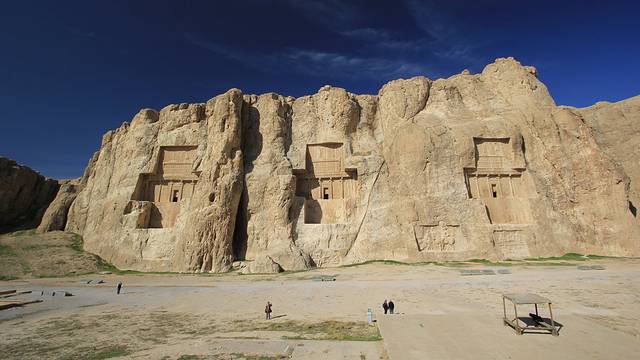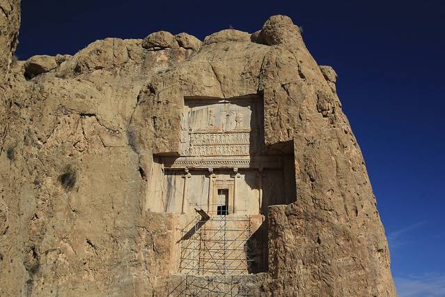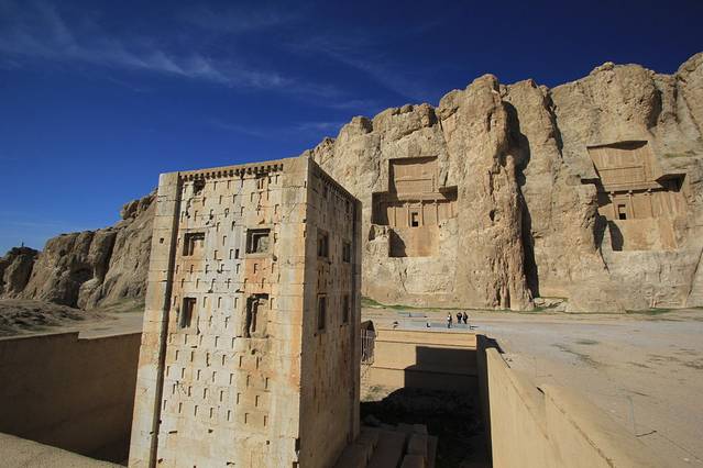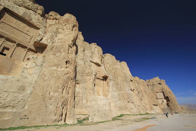 高大的山岩上是阿契美尼德王朝几个皇帝的陵墓,名字都是耳熟能详的大流士N世,薛西斯N世。
