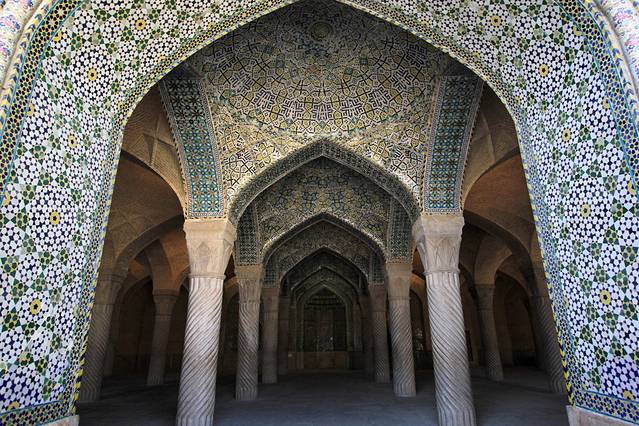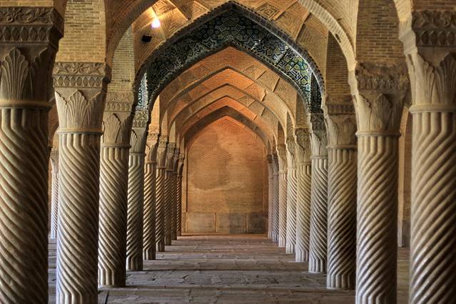 除了粉红清真寺以外,最为有名的就是那个有48根柱子的瓦基尔清真寺。