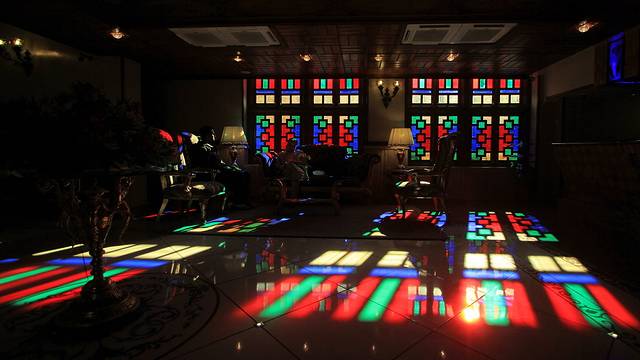 只有在冬天,阳光能够保持较长的时间从彩窗斜照进来,也只有在冬天,开门的时间正好是阳光洒满大厅的时间。也只有在冬天,地上会铺上波斯地毯,把整个房间映成粉红色调。当然,这一切的前提就是要人品优秀,在清晨的时候遇上一个晴天