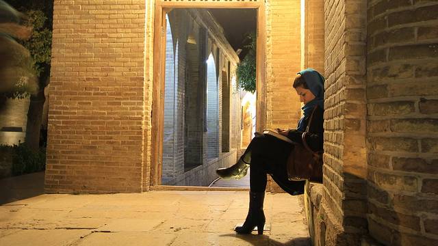 果然有女文青抱着诗集,再次注意到伊朗女性头发都可以只遮一部分。