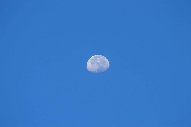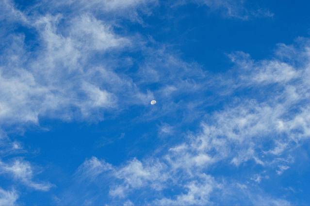 早晨的月亮还没有消失,拿出了长焦拍了一张。