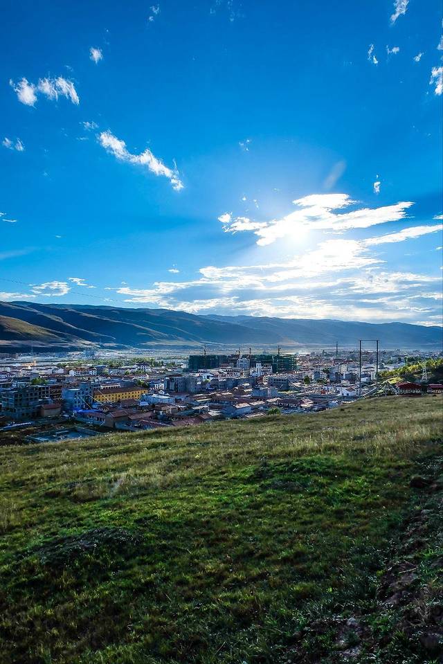 来到酒店之后收拾出门,朝着背后面的小山包走去,看到了远处的彩虹,还有整个阿坝县城。