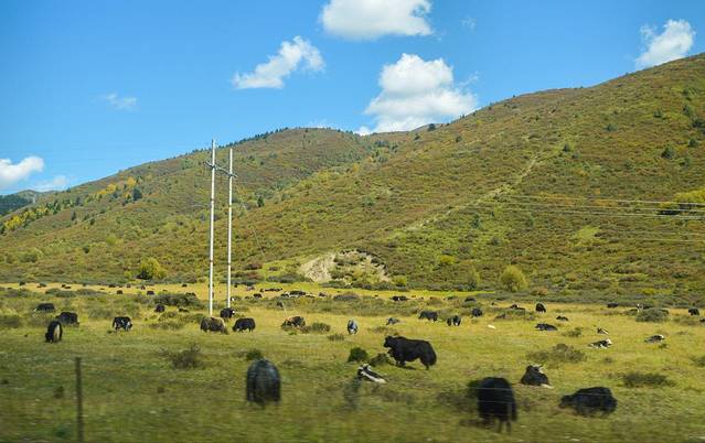 鹧鸪山隧道出来之后,峡谷开始变得看不见,唯有看到的却是那草原,还有成群结队的牦牛们。