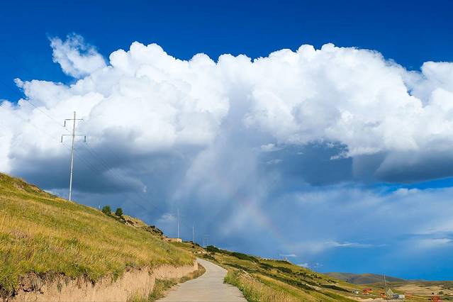 蓝天白云,还有广袤的草原,真的好想去打滚儿,不过肯定全是牦牛们的粪便吧。