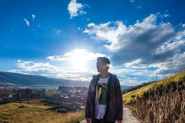 阿坝 来到高原不适合过度的运动,所有我们走的很慢,慢悠悠的到达小山包的地方拍照。