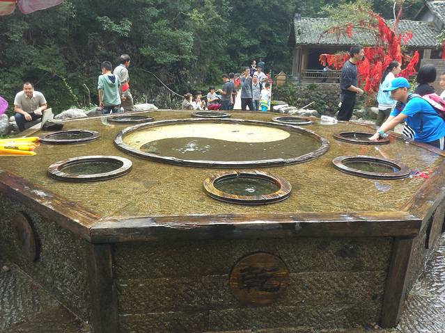 这里景色很迷人,有座石拱桥,可惜这个季节水不是很多,要是有水的话可能会更加有情调,再上面是神农药庄,看了下饭店的伙食还是挺不错的,估计炖的比较多。问了下价钱,还不是很贵的,等会中午下来的时候就到这里吃了..