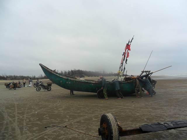 碰到他们拖网打鱼时,场面颇为壮观,人不少,可以开开眼界,有拖网的“东方红”机器,是一辆车,把网一点一点地往岸上拖,有意思啊