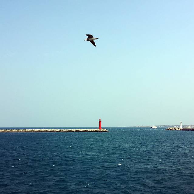 很早就听说牛岛是个美不胜收的地在方,坐了一个多小时的公交车后,刚想和基友抱怨就被眼前的景象所震惊了。如果说人的眼睛只能看到105°以内的美景,那我宁可去开眼角。我和基友都被眼前的美景所震惊。站在前往牛岛的摆渡船上,望着蔚蓝的海,让我不禁想起去年在贝加尔湖看到的那清澈见底的水。基友说,可能只有在国外才能看到这么美得水吧。