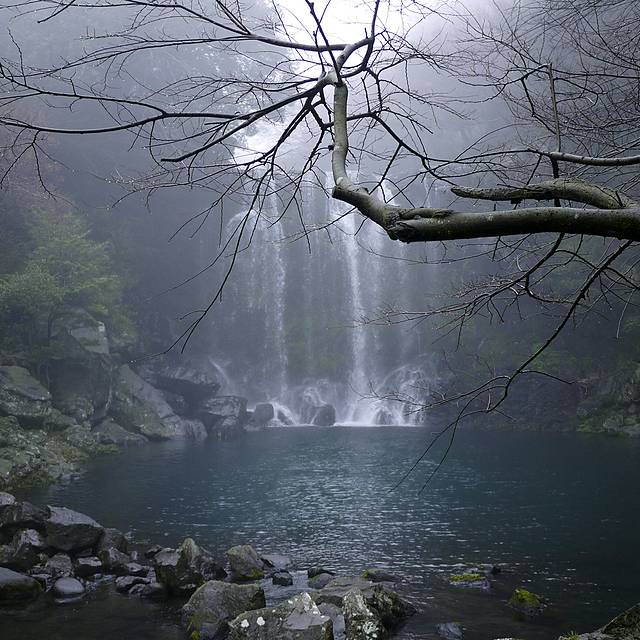 出来后我们走上了前往天地渊瀑布的小路,到瀑布需要通过一座叫做“仙临桥”的拱桥。在桥上的我们并没觉得有多害怕,而当我们走到桥下时候,回头看着桥上的壁画还有脚下的沟壑,不禁吸了一口凉气。基友说他忘不掉大桥给他的压迫感。转眼就到了瀑布,可能赶上断水期,并没有看到我们希望的大瀑布,无奈之下我们之后顺势而下去看了它分流的小瀑布。