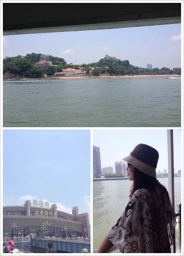 轮渡中,因为要到内厝澳码头,只好买了环岛游游轮,20元往返,欣赏一下不是很蓝的海水~ps:普通上岛轮渡往返只要8元噢!
