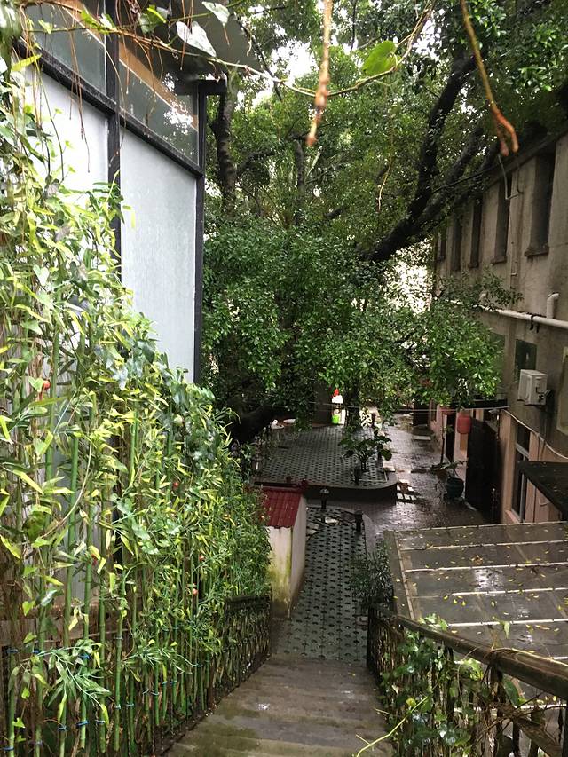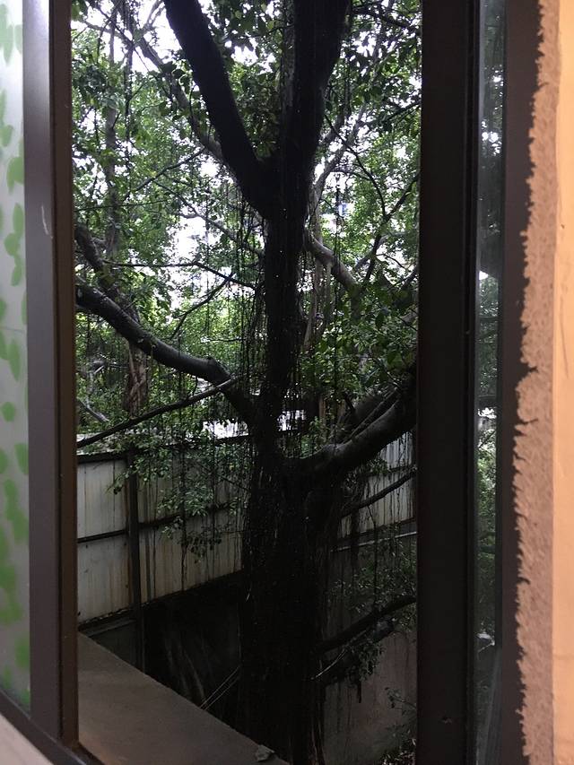 山庄后面窗外的大树