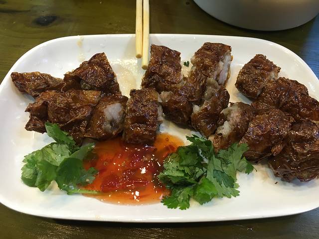 点了煎饺,猪脚饭,手撕鸡,还有芒果汁
