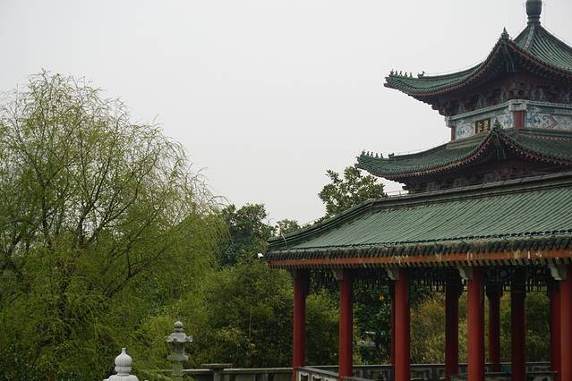 在花径下车就是如琴湖,因为外观像小提琴而得名。我俩在这里很成功地跟上了一位导游。