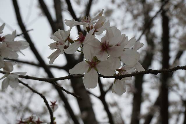 在公交车上和一小哥聊天的时候,听说樱花多是开在行政楼附近,学校围起来的区域应该就是行政楼附近的樱花。除了被围起来的,学校里还是可以看见樱花的,只不过是单棵的而已。在学校里简单地逛了逛我们便找了一个门出去了。