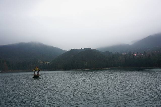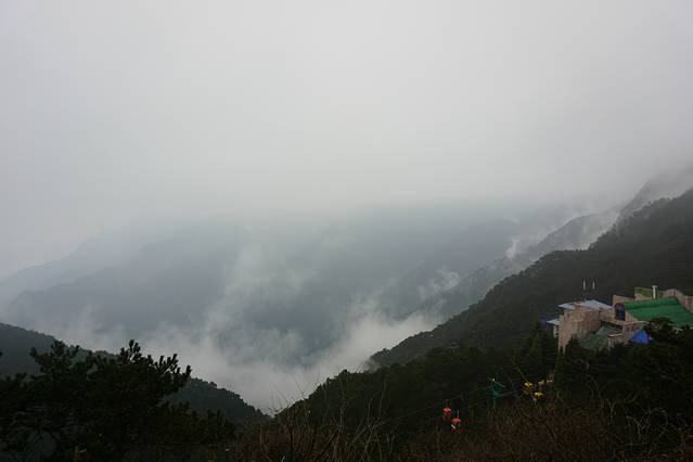 吸取昨天没吃好就爬山的教训,从含鄱口下来我俩就回到镇里吃了点面条,还回酒店睡了一午觉,2点去车站打算坐车去五老峰,但是调度员告诉我俩她不确定现在还发不发车去五老峰了,让我俩先坐到含鄱口去问那的调度,幸运的是去五老峰的车还发,但是工作人员也说雾大就是爬上去也什么都看不见。这时候去往三叠泉的车已经不发了,我俩去玩石门涧就决定把三叠泉这一景点留给下次也许不久也许30年后的庐山之行。