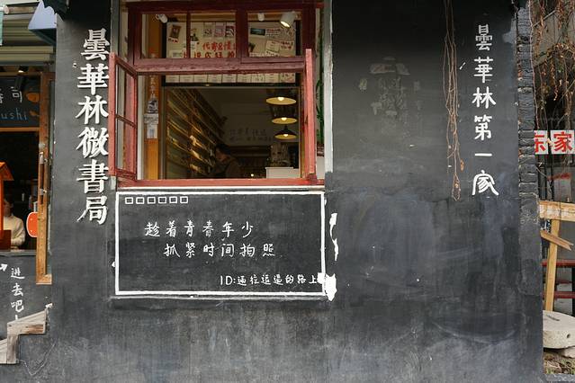 昙华林微书局是昙华林第一家,是个集书店,咖啡屋,武汉纪念品与一身的小店,在里面选购了几张明信片便欣然前行。看见微书店后还有走一段不算短的路才能看见第二家,这一路上有几所学校比肩而建。