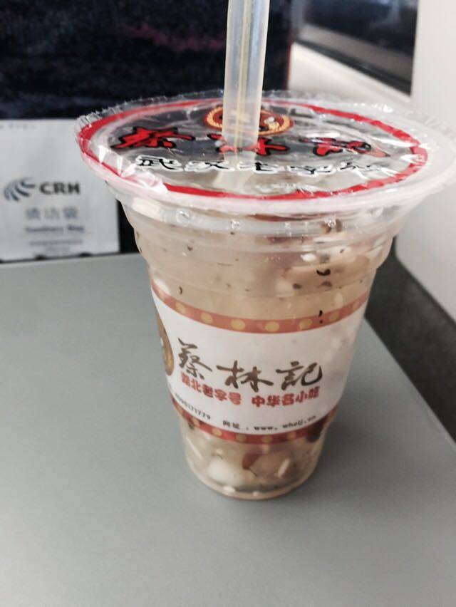 钟家村地铁站附近就有一家蔡林记,我俩在去火车站之前在这解决早饭。除了热干面还有很多种选择,人也不少,他家汤包也不错。