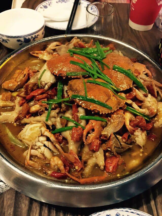 这家肉蟹煲我大一的时候来吃过,那时候还需要预约,不提前预约直接去是吃不上的,可能因为最近各种肉蟹煲开的算是满地开花了,他家不用预约早一点去就有座位了。位置就在百盛后身的小巷里,六朝门鸭血粉丝的侧面。微辣就很辣,云子吃不惯南方米饭,我在食堂买了3个馒头带去,一会就没我俩消灭了。他家底菜没有金针菇喜欢吃的可以加一份。