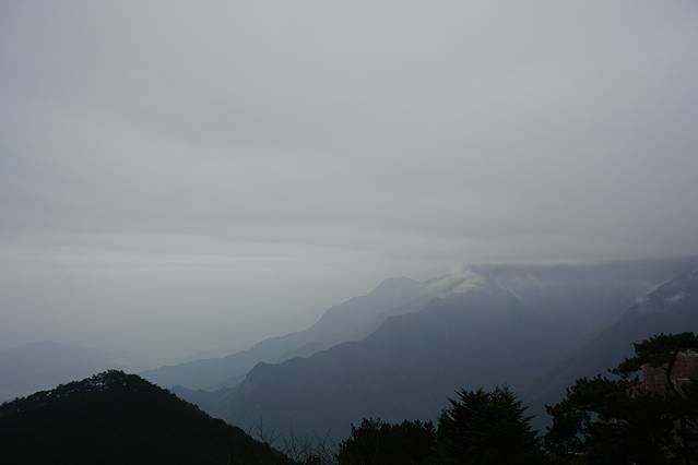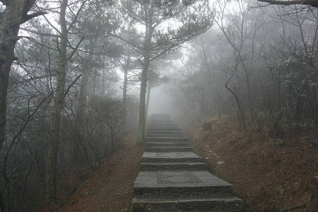 五老峰也没人,能见度也就5米的样子,我俩爬了20分钟发现离1峰还有一定距离,因为真的什么都看不见我俩就原路返回了。